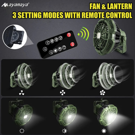 Rechargeable Camping Fan with LED Light & Remote Control, 7800Mah Portable USB Lantern Tent Fan for Car Ceiling Green