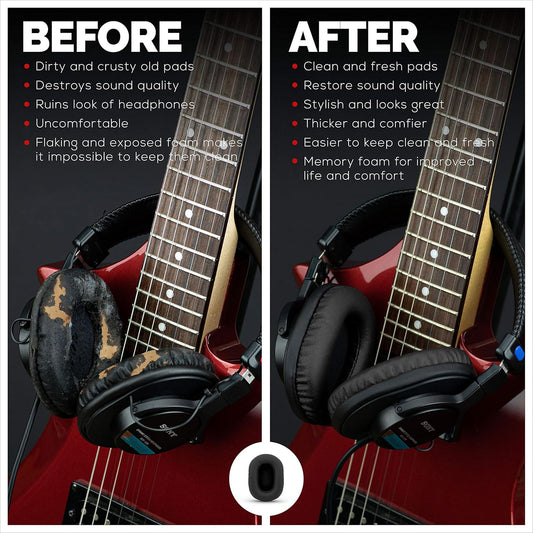 Replacement Earpads for Sony MDR 7506 Headphones - Quality Vegan Leather, Memory Foam Comfort, Long Lasting & Durable, Also Works with Headphones like Steelseries Arctis, ATH-M50X & More