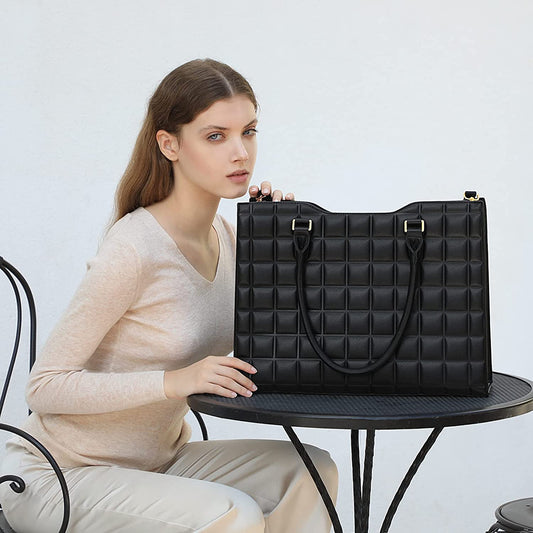 Laptop Tote Bag for Women Waterproof PU Leather Briefcase Computer Bag with Built-In USB Charging Port,Business Office 15.6 Inch Laptop Bag Large Capacity Handbag Satchel Purse 3Pcs Set (Black)
